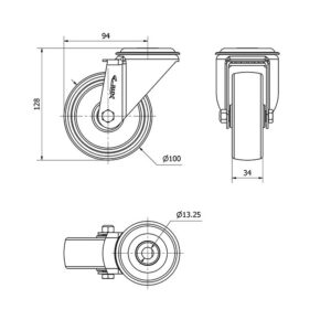 Rueda resina fenolica giratoria Alex diametro 100 mm. modelo 2-1834