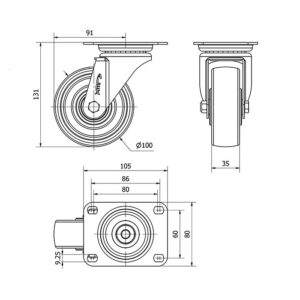 Rueda resina fenolica giratoria Alex diametro 100 mm. modelo 2-1090