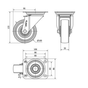 Rueda resina fenolica giratoria Alex diametro 100 mm. modelo 2-1096