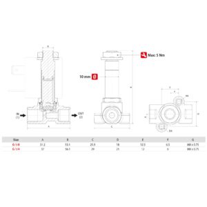 Electrovalvula accionamiento directo Aignep 2/2 N.C. 1/4″ inoxidable FKM 2,5 mm. X1F03125V0
