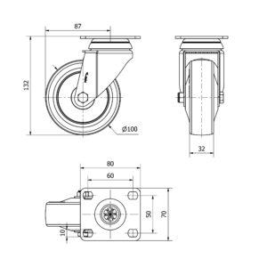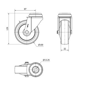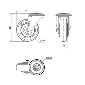 Rueda poliuretano giratoria Alex diametro 100 mm. modelo 2-4232
