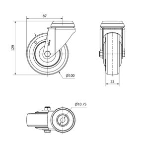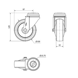 Rueda poliuretano giratoria Alex diametro 100 mm. modelo 2-4207