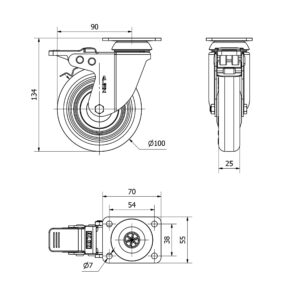 Rueda poliuretano giratoria con freno Alex diametro 100 mm. modelo 2-2015