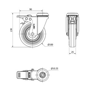 Rueda poliuretano giratoria con freno Alex diametro 100 mm. modelo 2-2030