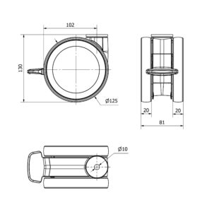 Rueda resina fenolica giratoria Alex diametro 125 mm. modelo 2-0013