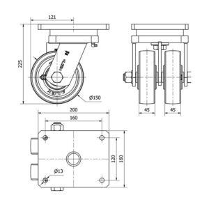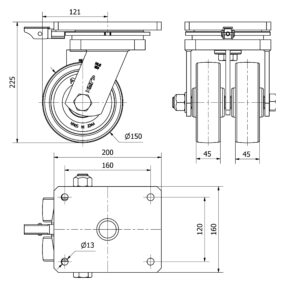SKU. 9456900El precio original era: 250,87€.163,07€El precio actual es: 163,07€. sin IVA (197,31€ IVA incluido)Rueda nylon-poliamida giratoria con bloqueo direccional Alex diametro 150 mm. modelo 2-3379 EAN 8422202233796