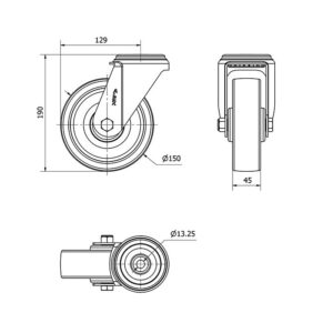 Rueda nylon-poliamida giratoria Alex diametro 150 mm. modelo 2-3670