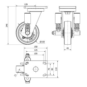 Rueda nylon-poliamida giratoria Alex diametro 150 mm. modelo 2-1871