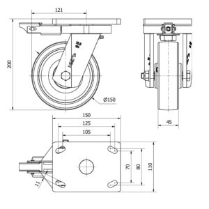 Rueda nylon-poliamida giratoria Alex diametro 150 mm. modelo 2-2704