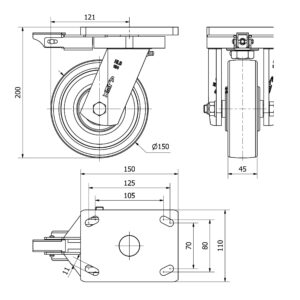 Rueda nylon-poliamida giratoria con bloqueo direccional Alex diametro 150 mm. modelo 2-3380