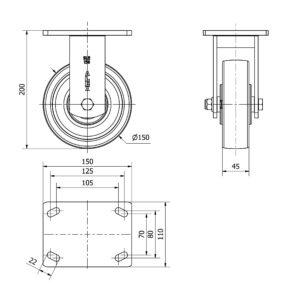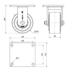 Rueda nylon-poliamida fija Alex diametro 150 mm. modelo 2-3674