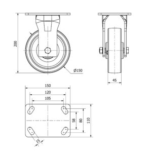 Rueda nylon-poliamida giratoria Alex diametro 150 mm. modelo 4-0800