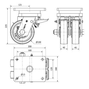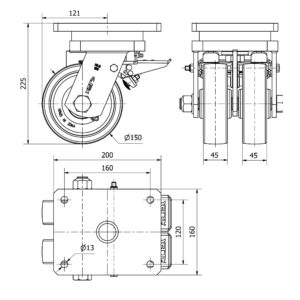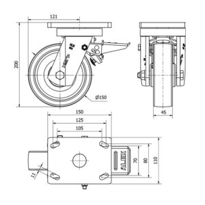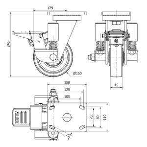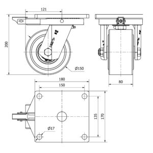 Rueda nylon-poliamida giratoria con freno Alex diametro 150 mm. modelo 4-1619