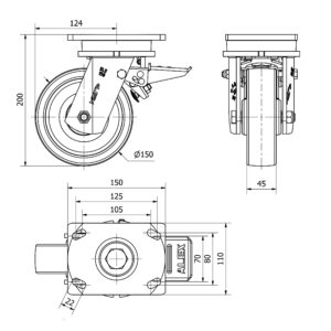 Rueda poliamix giratoria Alex diametro 150 mm. modelo 2-1415