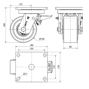 Rueda nylon-poliamida giratoria con freno Alex diametro 150 mm. modelo 2-1514