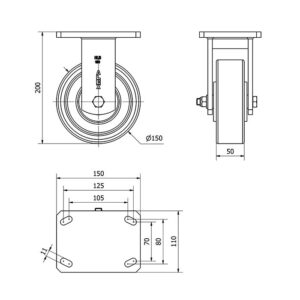 Rueda poliuretano fija Alex diametro 150 mm. modelo 2-0308