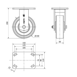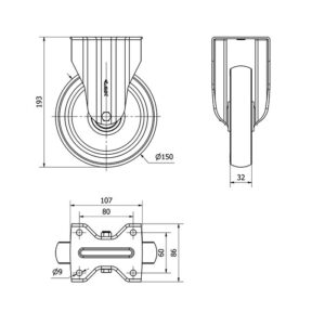 Rueda poliuretano fija Alex diametro 150 mm. modelo 2-2011