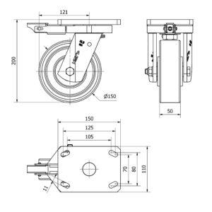 Rueda poliuretano giratoria Alex diametro 150 mm. modelo 4-0935