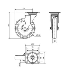 Rueda poliuretano giratoria Alex diametro 150 mm. modelo 4-0955