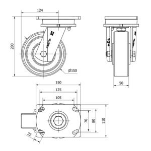 Rueda poliuretano giratoria Alex diametro 150 mm. modelo 2-4722