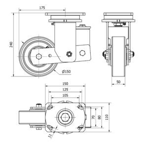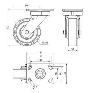 Rueda poliuretano giratoria Alex diametro 150 mm. modelo 4-0266