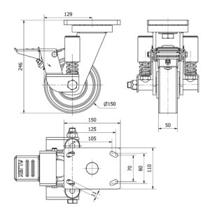 Rueda poliuretano giratoria con freno Alex diametro 150 mm. modelo 2-4042