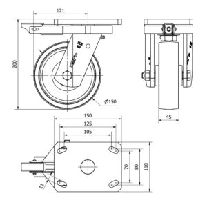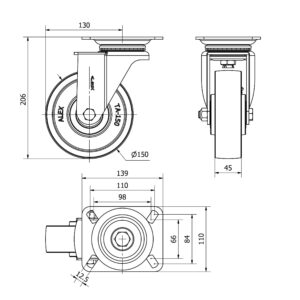 Rueda acero giratoria Alex diametro 150 mm. modelo 2-0031