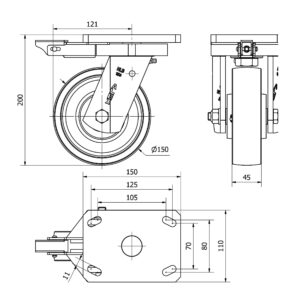 Rueda acero giratoria Alex diametro 150 mm. modelo 2-2519