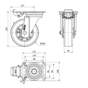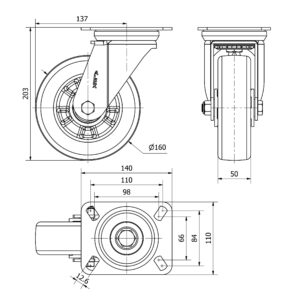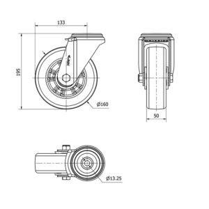 Rueda poliuretano giratoria Alex diametro 160 mm. modelo 2-3948