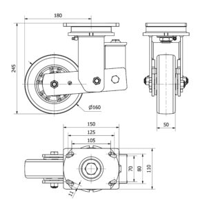 Rueda poliuretano giratoria Alex diametro 160 mm. modelo 2-3920