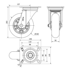 Rueda poliuretano giratoria Alex diametro 160 mm. modelo 2-4184