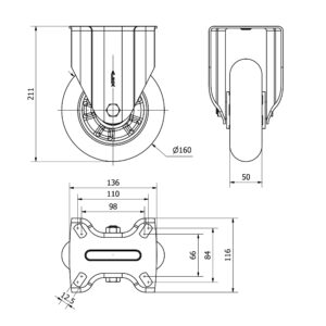Rueda poliuretano fija Alex diametro 160 mm. modelo TW0308