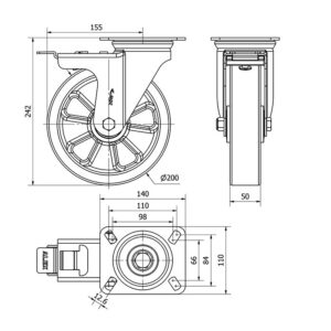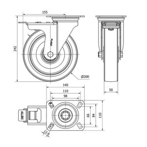 Rueda poliuretano giratoria con freno Alex diametro 200 mm. 2-2021