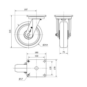 Rueda goma giratoria Alex diametro 250 mm. modelo 2-1953