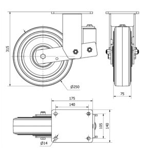 Rueda giratoria vulkotech Gayner diametro 250 mm. UPG8 250 HKB8-FS codigo 38-422-FS