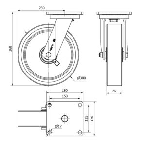 Rueda poliuretano giratoria Alex diametro 300 mm. modelo 2-3591