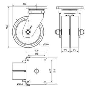 Rueda poliuretano giratoria con bloqueo direccional Alex diametro 300 mm. modelo 2-3547