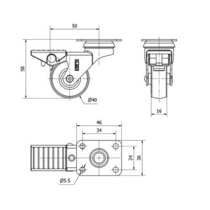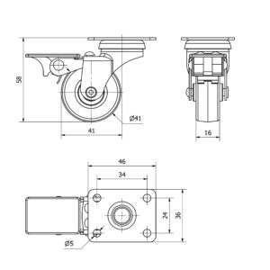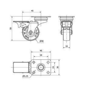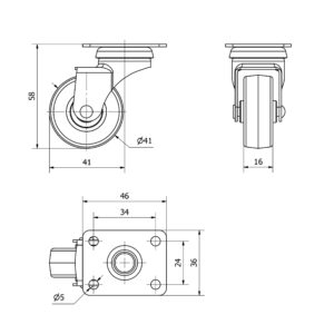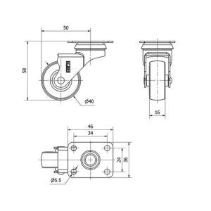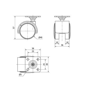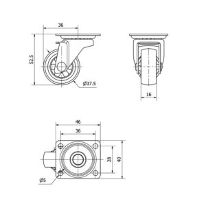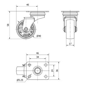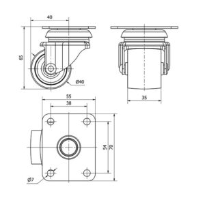 Rueda mobiliario pletina Gayner diametro 40 mm. DPG1 040-FS codigo 20-41-FS