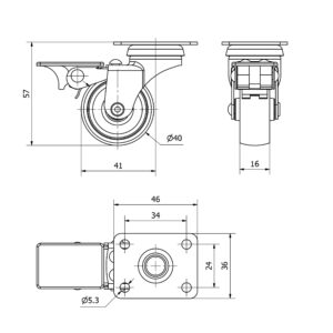 Rueda goma giratoria con freno Alex diametro 40 mm. modelo 1-0547