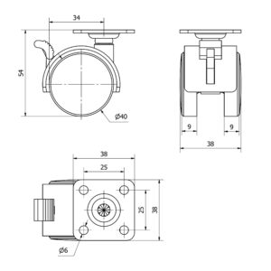 Rueda polipropileno-plastico giratoria Alex diametro 40 mm. modelo 3-0009