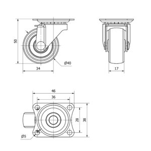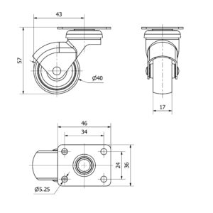Rueda polipropileno-plastico giratoria Alex diametro 40 mm. modelo 3-0017