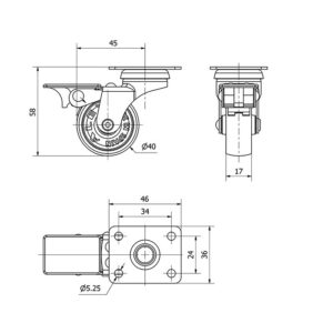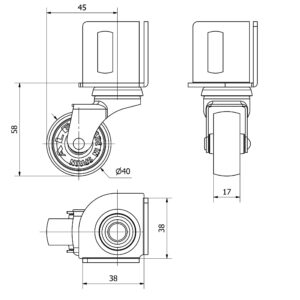 Rueda poliuretano giratoria Alex diametro 40 mm. modelo 2-2564