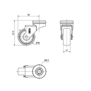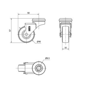 Rueda poliuretano giratoria Alex diametro 40 mm. modelo 2-2571