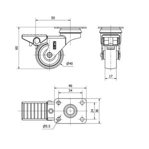 Rueda poliuretano giratoria con freno Alex diametro 40 mm. modelo 1-0556