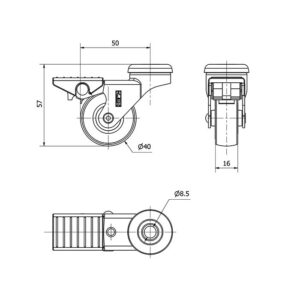 Rueda polipropileno-plastico giratoria con freno Alex diametro 40 mm. modelo TW0116
