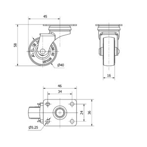 Rueda polipropileno-plastico fija Alex diametro 40 mm. modelo 2-0045