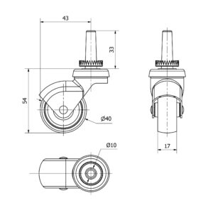 Rueda polipropileno-plastico giratoria Alex diametro 40 mm. modelo TW0113