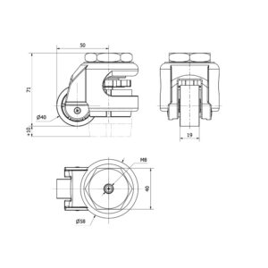 Rueda poliamida giratoria Alex diametro 42 mm. modelo 2-4552