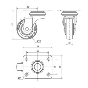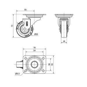 Rueda giratoria plastico Gayner diametro 50 mm. WEG1 050 codigo 20-59