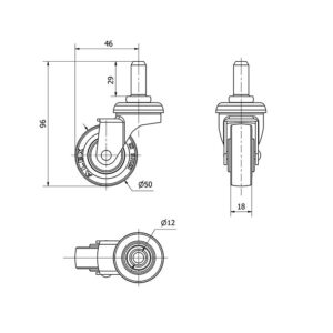 Rueda giratoria espiga Gayner diametro 50 mm. DEG1 050 codigo 20-50